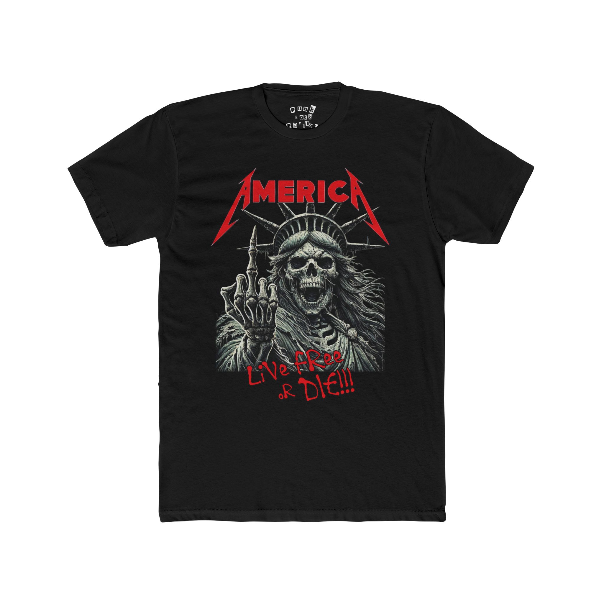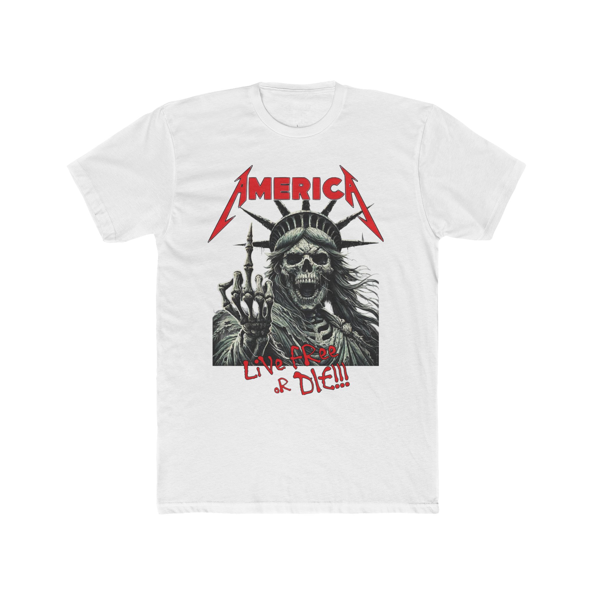 Our “AMERICA: LIVE FREE OR DIE” Tee: Embrace the spirit of rebellion and let your defiance shine.
